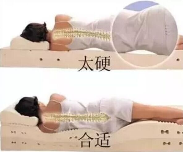 很多人出现了腰椎劳损的问题,就觉得一定是床垫的问题,想要换上一个硬一点的床垫,这样做是不是正确的呢?是不是垫上了硬床垫,腰部就会好很多?错,反而会更加伤害你的身体,让我们从以下的图片来了解床垫对人脊椎的影响。